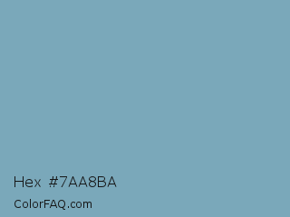 Hex #7aa8ba Color is a normal blue color and the nearest color is Moonstone Blue #73a9c2. Hex code #7aa8ba and RGB value is rgb(122,168,186). In RGB color space, this color is composed of 48% red, 66% green, 73% blue, In CMYK color space, this color is composed of 34% cyan, 10% magenta, 0% yellow , 27% black , In HSL color space, this color has a hue angle of 197° , 32% saturation and 60% lightness.