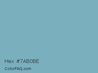 Hex #7ab0be Color is a light cyan color and the nearest color is Neptune #7cb7bb. Hex code #7ab0be and RGB value is rgb(122,176,190). In RGB color space, this color is composed of 48% red, 69% green, 75% blue, In CMYK color space, this color is composed of 36% cyan, 7% magenta, 0% yellow , 25% black , In HSL color space, this color has a hue angle of 192° , 34% saturation and 61% lightness.