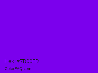 Hex #7b00ed Color is a normal purple color and the nearest color is Violet Color Wheel #7f00ff. Hex code #7b00ed and RGB value is rgb(123,0,237). In RGB color space, this color is composed of 48% red, 0% green, 93% blue, In CMYK color space, this color is composed of 48% cyan, 100% magenta, 0% yellow , 7% black , In HSL color space, this color has a hue angle of 271° , 100% saturation and 46% lightness.