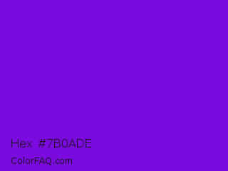 Hex #7b0ade Color is a normal purple color and the nearest color is French Violet #8806ce. Hex code #7b0ade and RGB value is rgb(123,10,222). In RGB color space, this color is composed of 48% red, 4% green, 87% blue, In CMYK color space, this color is composed of 45% cyan, 95% magenta, 0% yellow , 13% black , In HSL color space, this color has a hue angle of 272° , 91% saturation and 45% lightness.