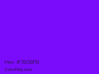 Hex #7b0bfb Color is a normal violet color and the nearest color is Violet Color Wheel #7f00ff. Hex code #7b0bfb and RGB value is rgb(123,11,251). In RGB color space, this color is composed of 48% red, 4% green, 98% blue, In CMYK color space, this color is composed of 51% cyan, 96% magenta, 0% yellow , 2% black , In HSL color space, this color has a hue angle of 268° , 97% saturation and 51% lightness.