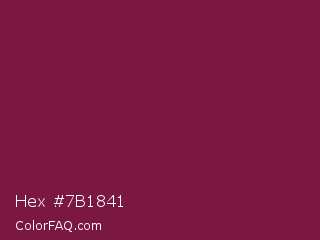 Hex #7b1841 Color is a dark rose color and the nearest color is Pansy Purple #78184a. Hex code #7b1841 and RGB value is rgb(123,24,65). In RGB color space, this color is composed of 48% red, 9% green, 25% blue, In CMYK color space, this color is composed of 0% cyan, 80% magenta, 47% yellow , 52% black , In HSL color space, this color has a hue angle of 335° , 67% saturation and 29% lightness.