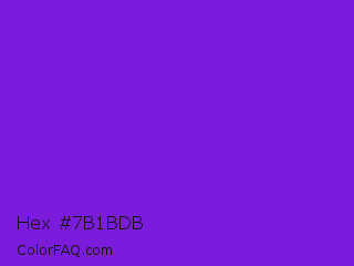 Hex #7b1bdb Color is a normal violet color and the nearest color is Blue Violet #8a2be2. Hex code #7b1bdb and RGB value is rgb(123,27,219). In RGB color space, this color is composed of 48% red, 11% green, 86% blue, In CMYK color space, this color is composed of 44% cyan, 88% magenta, 0% yellow , 14% black , In HSL color space, this color has a hue angle of 270° , 78% saturation and 48% lightness.