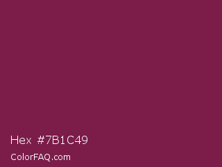 Hex #7b1c49 Color is a dark rose color and the nearest color is Pansy Purple #78184a. Hex code #7b1c49 and RGB value is rgb(123,28,73). In RGB color space, this color is composed of 48% red, 11% green, 29% blue, In CMYK color space, this color is composed of 0% cyan, 77% magenta, 41% yellow , 52% black , In HSL color space, this color has a hue angle of 332° , 63% saturation and 30% lightness.