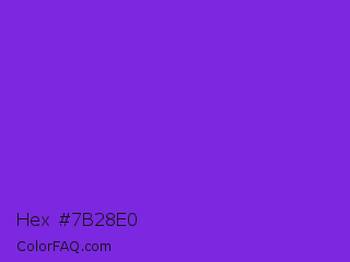 Hex #7b28e0 Color is a normal violet color and the nearest color is Blue Violet #8a2be2. Hex code #7b28e0 and RGB value is rgb(123,40,224). In RGB color space, this color is composed of 48% red, 16% green, 88% blue, In CMYK color space, this color is composed of 45% cyan, 82% magenta, 0% yellow , 12% black , In HSL color space, this color has a hue angle of 267° , 75% saturation and 52% lightness.