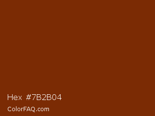 Hex #7b2b04 Color is a dark orange color and the nearest color is Smokey Topaz #832a0d. Hex code #7b2b04 and RGB value is rgb(123,43,4). In RGB color space, this color is composed of 48% red, 17% green, 2% blue, In CMYK color space, this color is composed of 0% cyan, 65% magenta, 97% yellow , 52% black , In HSL color space, this color has a hue angle of 20° , 94% saturation and 25% lightness.