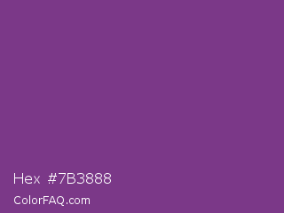 Hex #7b3888 Color is a normal purple color and the nearest color is Vivid Violet #803790. Hex code #7b3888 and RGB value is rgb(123,56,136). In RGB color space, this color is composed of 48% red, 22% green, 53% blue, In CMYK color space, this color is composed of 10% cyan, 59% magenta, 0% yellow , 47% black , In HSL color space, this color has a hue angle of 290° , 42% saturation and 38% lightness.