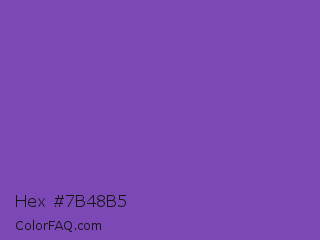 Hex #7b48b5 Color is a normal violet color and the nearest color is Studio #714ab2. Hex code #7b48b5 and RGB value is rgb(123,72,181). In RGB color space, this color is composed of 48% red, 28% green, 71% blue, In CMYK color space, this color is composed of 32% cyan, 60% magenta, 0% yellow , 29% black , In HSL color space, this color has a hue angle of 268° , 43% saturation and 50% lightness.