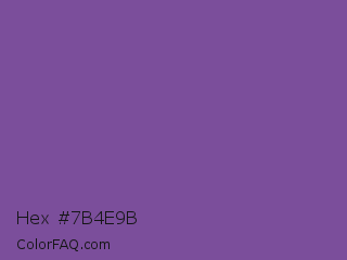 Hex #7b4e9b Color is a normal purple color and the nearest color is Dark Lavender #734f96. Hex code #7b4e9b and RGB value is rgb(123,78,155). In RGB color space, this color is composed of 48% red, 31% green, 61% blue, In CMYK color space, this color is composed of 21% cyan, 50% magenta, 0% yellow , 39% black , In HSL color space, this color has a hue angle of 275° , 33% saturation and 46% lightness.