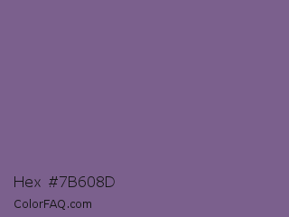 Hex #7b608d Color is a normal purple color and the nearest color is Rum #796989. Hex code #7b608d and RGB value is rgb(123,96,141). In RGB color space, this color is composed of 48% red, 38% green, 55% blue, In CMYK color space, this color is composed of 13% cyan, 32% magenta, 0% yellow , 45% black , In HSL color space, this color has a hue angle of 276° , 19% saturation and 46% lightness.