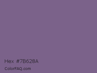 Hex #7b628a Color is a normal purple color and the nearest color is Rum #796989. Hex code #7b628a and RGB value is rgb(123,98,138). In RGB color space, this color is composed of 48% red, 38% green, 54% blue, In CMYK color space, this color is composed of 11% cyan, 29% magenta, 0% yellow , 46% black , In HSL color space, this color has a hue angle of 278° , 17% saturation and 46% lightness.