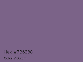 Hex #7b6388 Color is a normal purple color and the nearest color is Rum #796989. Hex code #7b6388 and RGB value is rgb(123,99,136). In RGB color space, this color is composed of 48% red, 39% green, 53% blue, In CMYK color space, this color is composed of 10% cyan, 27% magenta, 0% yellow , 47% black , In HSL color space, this color has a hue angle of 279° , 16% saturation and 46% lightness.