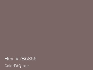 Hex #7b6866 Color is a normal red color and the nearest color is Sandstone #796d62. Hex code #7b6866 and RGB value is rgb(123,104,102). In RGB color space, this color is composed of 48% red, 41% green, 40% blue, In CMYK color space, this color is composed of 0% cyan, 15% magenta, 17% yellow , 52% black , In HSL color space, this color has a hue angle of 6° , 9% saturation and 44% lightness.