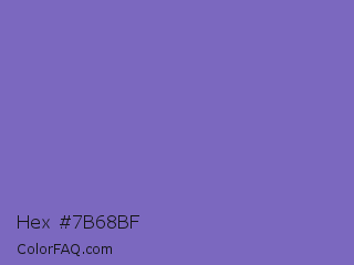 Hex #7b68bf Color is a normal indigo color and the nearest color is Toolbox #746cc0. Hex code #7b68bf and RGB value is rgb(123,104,191). In RGB color space, this color is composed of 48% red, 41% green, 75% blue, In CMYK color space, this color is composed of 36% cyan, 46% magenta, 0% yellow , 25% black , In HSL color space, this color has a hue angle of 253° , 40% saturation and 58% lightness.