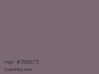 Hex #7b6975 Color is a normal magenta color and the nearest color is Old Lavender #796878. Hex code #7b6975 and RGB value is rgb(123,105,117). In RGB color space, this color is composed of 48% red, 41% green, 46% blue, In CMYK color space, this color is composed of 0% cyan, 15% magenta, 5% yellow , 52% black , In HSL color space, this color has a hue angle of 320° , 8% saturation and 45% lightness.