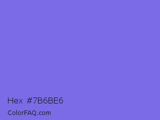 Hex #7b6be6 Color is a light indigo color and the nearest color is Medium Slate Blue #7b68ee. Hex code #7b6be6 and RGB value is rgb(123,107,230). In RGB color space, this color is composed of 48% red, 42% green, 90% blue, In CMYK color space, this color is composed of 47% cyan, 53% magenta, 0% yellow , 10% black , In HSL color space, this color has a hue angle of 248° , 71% saturation and 66% lightness.