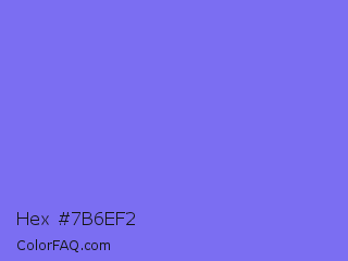 Hex #7b6ef2 Color is a light indigo color and the nearest color is Medium Slate Blue #7b68ee. Hex code #7b6ef2 and RGB value is rgb(123,110,242). In RGB color space, this color is composed of 48% red, 43% green, 95% blue, In CMYK color space, this color is composed of 49% cyan, 55% magenta, 0% yellow , 5% black , In HSL color space, this color has a hue angle of 246° , 84% saturation and 69% lightness.