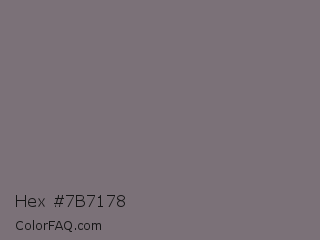Hex #7b7178 Color is a normal magenta color and the nearest color is Empress #817377. Hex code #7b7178 and RGB value is rgb(123,113,120). In RGB color space, this color is composed of 48% red, 44% green, 47% blue, In CMYK color space, this color is composed of 0% cyan, 8% magenta, 2% yellow , 52% black , In HSL color space, this color has a hue angle of 318° , 4% saturation and 46% lightness.