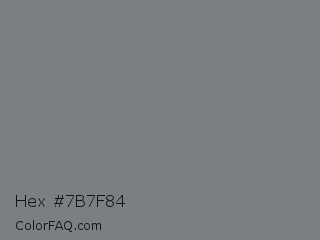 Hex #7b7f84 Color is a normal blue color and the nearest color is Jumbo #7c7b82. Hex code #7b7f84 and RGB value is rgb(123,127,132). In RGB color space, this color is composed of 48% red, 50% green, 52% blue, In CMYK color space, this color is composed of 7% cyan, 4% magenta, 0% yellow , 48% black , In HSL color space, this color has a hue angle of 213° , 4% saturation and 50% lightness.