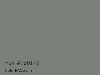 Hex #7b8179 Color is a normal green color and the nearest color is Friar Gray #807e79. Hex code #7b8179 and RGB value is rgb(123,129,121). In RGB color space, this color is composed of 48% red, 51% green, 47% blue, In CMYK color space, this color is composed of 5% cyan, 0% magenta, 6% yellow , 49% black , In HSL color space, this color has a hue angle of 105° , 3% saturation and 49% lightness.