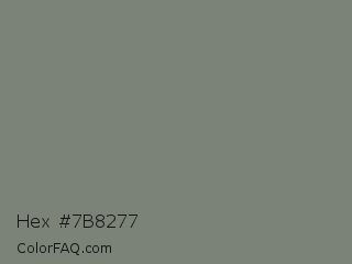 Hex #7b8277 Color is a normal green color and the nearest color is Friar Gray #807e79. Hex code #7b8277 and RGB value is rgb(123,130,119). In RGB color space, this color is composed of 48% red, 51% green, 47% blue, In CMYK color space, this color is composed of 5% cyan, 0% magenta, 8% yellow , 49% black , In HSL color space, this color has a hue angle of 98° , 4% saturation and 49% lightness.