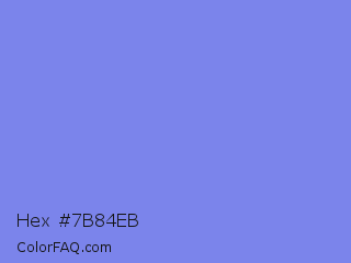 Hex #7b84eb Color is a light blue color and the nearest color is Chetwode Blue #8581d9. Hex code #7b84eb and RGB value is rgb(123,132,235). In RGB color space, this color is composed of 48% red, 52% green, 92% blue, In CMYK color space, this color is composed of 48% cyan, 44% magenta, 0% yellow , 8% black , In HSL color space, this color has a hue angle of 235° , 74% saturation and 70% lightness.