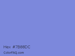 Hex #7b88dc Color is a light blue color and the nearest color is Chetwode Blue #8581d9. Hex code #7b88dc and RGB value is rgb(123,136,220). In RGB color space, this color is composed of 48% red, 53% green, 86% blue, In CMYK color space, this color is composed of 44% cyan, 38% magenta, 0% yellow , 14% black , In HSL color space, this color has a hue angle of 232° , 58% saturation and 67% lightness.