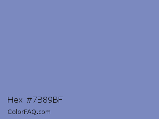 Hex #7b89bf Color is a light blue color and the nearest color is Ship Cove #788bba. Hex code #7b89bf and RGB value is rgb(123,137,191). In RGB color space, this color is composed of 48% red, 54% green, 75% blue, In CMYK color space, this color is composed of 36% cyan, 28% magenta, 0% yellow , 25% black , In HSL color space, this color has a hue angle of 228° , 35% saturation and 62% lightness.