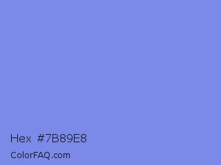 Hex #7b89e8 Color is a light blue color and the nearest color is Chetwode Blue #8581d9. Hex code #7b89e8 and RGB value is rgb(123,137,232). In RGB color space, this color is composed of 48% red, 54% green, 91% blue, In CMYK color space, this color is composed of 47% cyan, 41% magenta, 0% yellow , 9% black , In HSL color space, this color has a hue angle of 232° , 70% saturation and 70% lightness.
