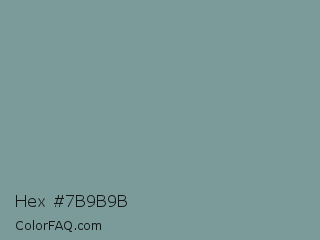 Hex #7b9b9b Color is a normal cyan color and the nearest color is Sea Nymph #78a39c. Hex code #7b9b9b and RGB value is rgb(123,155,155). In RGB color space, this color is composed of 48% red, 61% green, 61% blue, In CMYK color space, this color is composed of 21% cyan, 0% magenta, 0% yellow , 39% black , In HSL color space, this color has a hue angle of 180° , 14% saturation and 55% lightness.