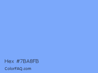 Hex #7ba8fb Color is a light blue color and the nearest color is French Sky Blue #77b5fe. Hex code #7ba8fb and RGB value is rgb(123,168,251). In RGB color space, this color is composed of 48% red, 66% green, 98% blue, In CMYK color space, this color is composed of 51% cyan, 33% magenta, 0% yellow , 2% black , In HSL color space, this color has a hue angle of 219° , 94% saturation and 73% lightness.
