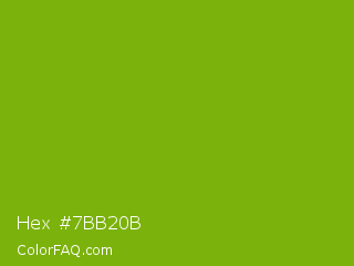 Hex #7bb20b Color is a normal green color and the nearest color is Lima #76bd17. Hex code #7bb20b and RGB value is rgb(123,178,11). In RGB color space, this color is composed of 48% red, 70% green, 4% blue, In CMYK color space, this color is composed of 31% cyan, 0% magenta, 94% yellow , 30% black , In HSL color space, this color has a hue angle of 80° , 88% saturation and 37% lightness.