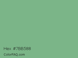 Hex #7bb588 Color is a normal green color and the nearest color is Bay Leaf #7da98d. Hex code #7bb588 and RGB value is rgb(123,181,136). In RGB color space, this color is composed of 48% red, 71% green, 53% blue, In CMYK color space, this color is composed of 32% cyan, 0% magenta, 25% yellow , 29% black , In HSL color space, this color has a hue angle of 133° , 28% saturation and 60% lightness.