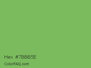 Hex #7bbb5e Color is a normal green color and the nearest color is Bud Green #7bb661. Hex code #7bbb5e and RGB value is rgb(123,187,94). In RGB color space, this color is composed of 48% red, 73% green, 37% blue, In CMYK color space, this color is composed of 34% cyan, 0% magenta, 50% yellow , 27% black , In HSL color space, this color has a hue angle of 101° , 41% saturation and 55% lightness.