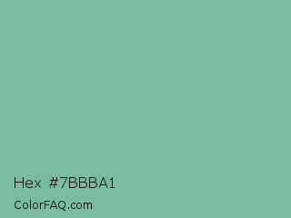 Hex #7bbba1 Color is a light green color and the nearest color is Acapulco #7cb0a1. Hex code #7bbba1 and RGB value is rgb(123,187,161). In RGB color space, this color is composed of 48% red, 73% green, 63% blue, In CMYK color space, this color is composed of 34% cyan, 0% magenta, 14% yellow , 27% black , In HSL color space, this color has a hue angle of 156° , 32% saturation and 61% lightness.