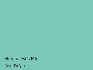 Hex #7bc7ba Color is a light cyan color and the nearest color is Neptune #7cb7bb. Hex code #7bc7ba and RGB value is rgb(123,199,186). In RGB color space, this color is composed of 48% red, 78% green, 73% blue, In CMYK color space, this color is composed of 38% cyan, 0% magenta, 7% yellow , 22% black , In HSL color space, this color has a hue angle of 170° , 40% saturation and 63% lightness.