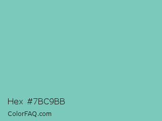 Hex #7bc9bb Color is a light cyan color and the nearest color is Monte Carlo #83d0c6. Hex code #7bc9bb and RGB value is rgb(123,201,187). In RGB color space, this color is composed of 48% red, 79% green, 73% blue, In CMYK color space, this color is composed of 39% cyan, 0% magenta, 7% yellow , 21% black , In HSL color space, this color has a hue angle of 169° , 42% saturation and 64% lightness.