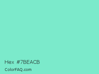 Hex #7beacb Color is a light green color and the nearest color is Bermuda #7dd8c6. Hex code #7beacb and RGB value is rgb(123,234,203). In RGB color space, this color is composed of 48% red, 92% green, 80% blue, In CMYK color space, this color is composed of 47% cyan, 0% magenta, 13% yellow , 8% black , In HSL color space, this color has a hue angle of 163° , 73% saturation and 70% lightness.