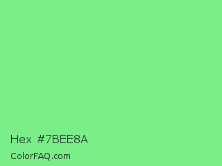 Hex #7bee8a Color is a light green color and the nearest color is Light Green #90ee90. Hex code #7bee8a and RGB value is rgb(123,238,138). In RGB color space, this color is composed of 48% red, 93% green, 54% blue, In CMYK color space, this color is composed of 48% cyan, 0% magenta, 42% yellow , 7% black , In HSL color space, this color has a hue angle of 128° , 77% saturation and 71% lightness.