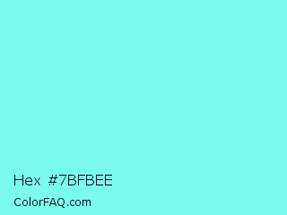 Hex #7bfbee Color is a light cyan color and the nearest color is Electric Blue #7df9ff. Hex code #7bfbee and RGB value is rgb(123,251,238). In RGB color space, this color is composed of 48% red, 98% green, 93% blue, In CMYK color space, this color is composed of 51% cyan, 0% magenta, 5% yellow , 2% black , In HSL color space, this color has a hue angle of 174° , 94% saturation and 73% lightness.