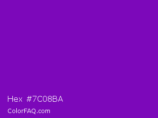 Hex #7c08ba Color is a normal purple color and the nearest color is Violet RYB #8601af. Hex code #7c08ba and RGB value is rgb(124,8,186). In RGB color space, this color is composed of 49% red, 3% green, 73% blue, In CMYK color space, this color is composed of 33% cyan, 96% magenta, 0% yellow , 27% black , In HSL color space, this color has a hue angle of 279° , 92% saturation and 38% lightness.