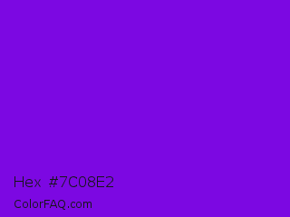 Hex #7c08e2 Color is a normal purple color and the nearest color is French Violet #8806ce. Hex code #7c08e2 and RGB value is rgb(124,8,226). In RGB color space, this color is composed of 49% red, 3% green, 89% blue, In CMYK color space, this color is composed of 45% cyan, 96% magenta, 0% yellow , 11% black , In HSL color space, this color has a hue angle of 272° , 93% saturation and 46% lightness.
