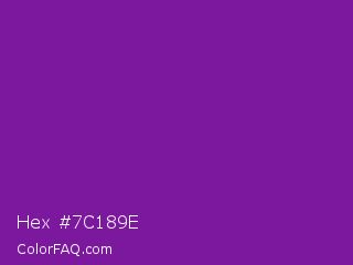 Hex #7c189e Color is a normal purple color and the nearest color is Seance #731e8f. Hex code #7c189e and RGB value is rgb(124,24,158). In RGB color space, this color is composed of 49% red, 9% green, 62% blue, In CMYK color space, this color is composed of 22% cyan, 85% magenta, 0% yellow , 38% black , In HSL color space, this color has a hue angle of 285° , 74% saturation and 36% lightness.