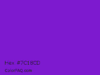 Hex #7c18cd Color is a normal purple color and the nearest color is French Violet #8806ce. Hex code #7c18cd and RGB value is rgb(124,24,205). In RGB color space, this color is composed of 49% red, 9% green, 80% blue, In CMYK color space, this color is composed of 40% cyan, 88% magenta, 0% yellow , 20% black , In HSL color space, this color has a hue angle of 273° , 79% saturation and 45% lightness.