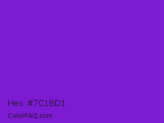 Hex #7c1bd1 Color is a normal purple color and the nearest color is French Violet #8806ce. Hex code #7c1bd1 and RGB value is rgb(124,27,209). In RGB color space, this color is composed of 49% red, 11% green, 82% blue, In CMYK color space, this color is composed of 41% cyan, 87% magenta, 0% yellow , 18% black , In HSL color space, this color has a hue angle of 272° , 77% saturation and 46% lightness.