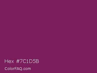 Hex #7c1d5b Color is a dark magenta color and the nearest color is French Plum #811453. Hex code #7c1d5b and RGB value is rgb(124,29,91). In RGB color space, this color is composed of 49% red, 11% green, 36% blue, In CMYK color space, this color is composed of 0% cyan, 77% magenta, 27% yellow , 51% black , In HSL color space, this color has a hue angle of 321° , 62% saturation and 30% lightness.