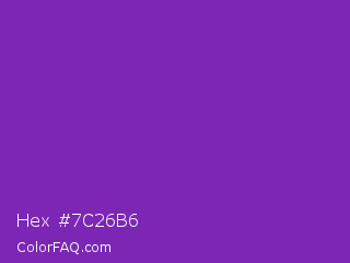 Hex #7c26b6 Color is a normal purple color and the nearest color is Grape #6f2da8. Hex code #7c26b6 and RGB value is rgb(124,38,182). In RGB color space, this color is composed of 49% red, 15% green, 71% blue, In CMYK color space, this color is composed of 32% cyan, 79% magenta, 0% yellow , 29% black , In HSL color space, this color has a hue angle of 276° , 65% saturation and 43% lightness.