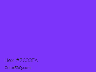 Hex #7c33fa Color is a normal violet color and the nearest color is Blue Violet #8a2be2. Hex code #7c33fa and RGB value is rgb(124,51,250). In RGB color space, this color is composed of 49% red, 20% green, 98% blue, In CMYK color space, this color is composed of 50% cyan, 80% magenta, 0% yellow , 2% black , In HSL color space, this color has a hue angle of 262° , 95% saturation and 59% lightness.