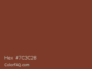 Hex #7c3c28 Color is a normal red color and the nearest color is Nutmeg #81422c. Hex code #7c3c28 and RGB value is rgb(124,60,40). In RGB color space, this color is composed of 49% red, 24% green, 16% blue, In CMYK color space, this color is composed of 0% cyan, 52% magenta, 68% yellow , 51% black , In HSL color space, this color has a hue angle of 14° , 51% saturation and 32% lightness.