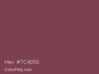 Hex #7c4050 Color is a normal rose color and the nearest color is Tuscan Red #7c4848. Hex code #7c4050 and RGB value is rgb(124,64,80). In RGB color space, this color is composed of 49% red, 25% green, 31% blue, In CMYK color space, this color is composed of 0% cyan, 48% magenta, 35% yellow , 51% black , In HSL color space, this color has a hue angle of 344° , 32% saturation and 37% lightness.